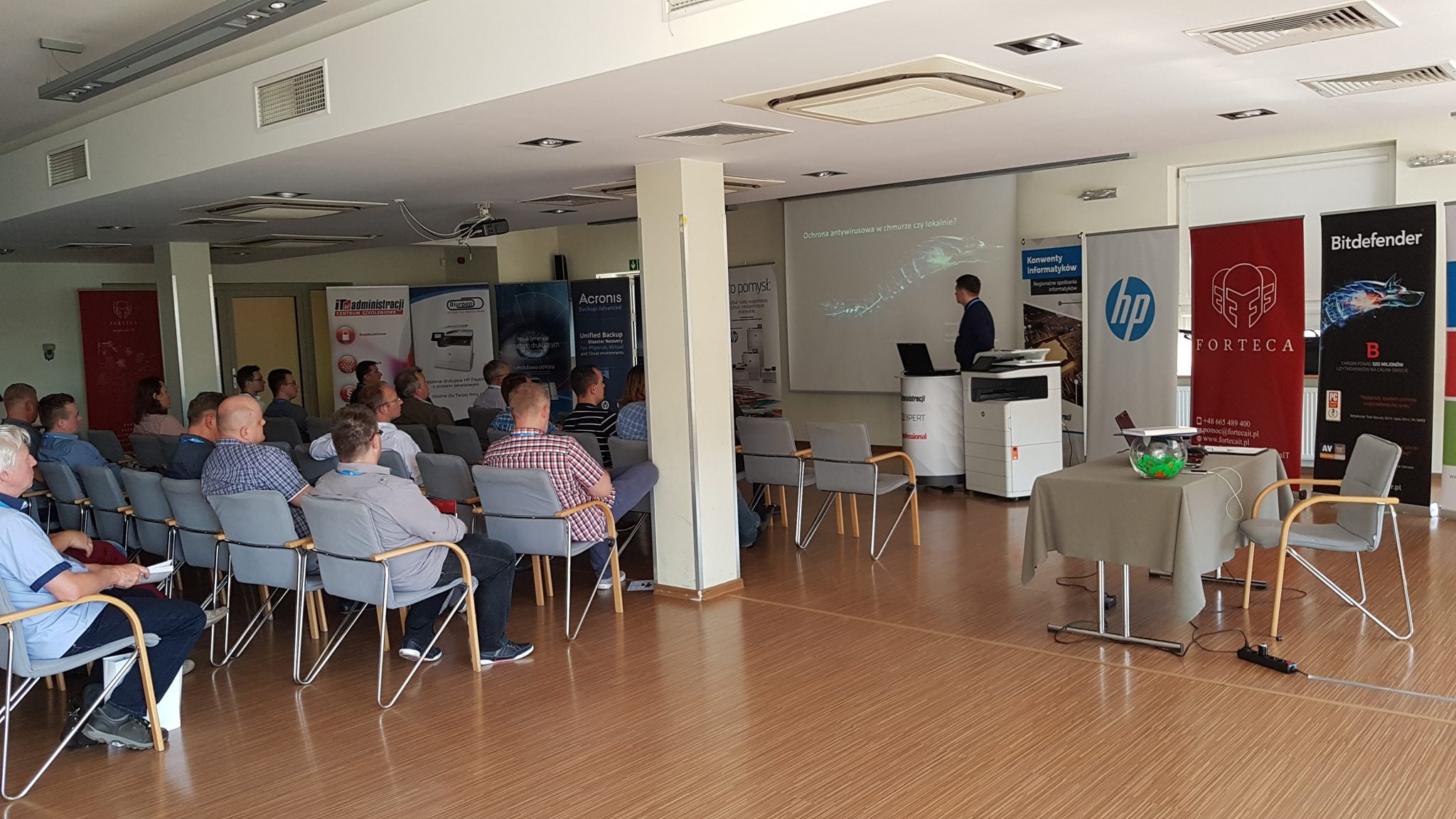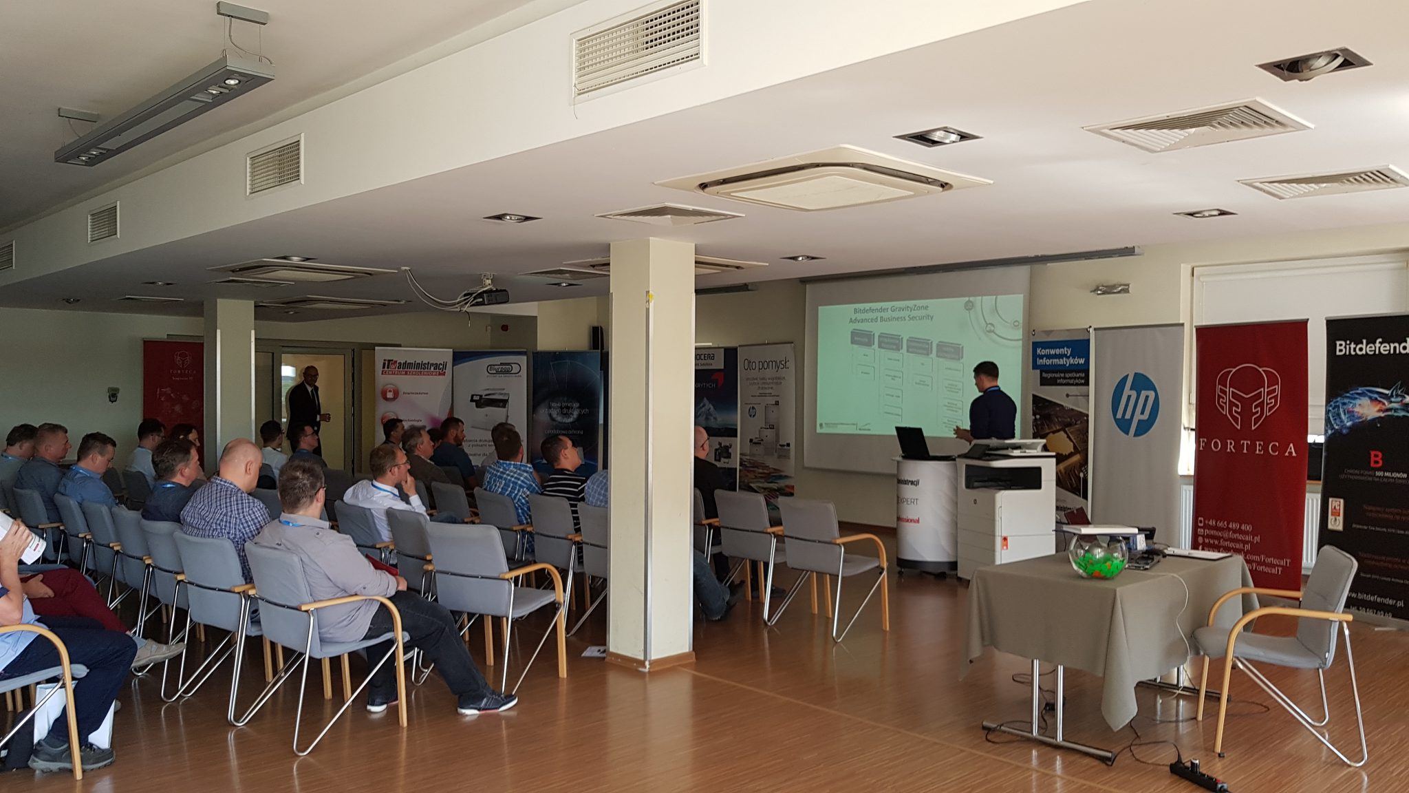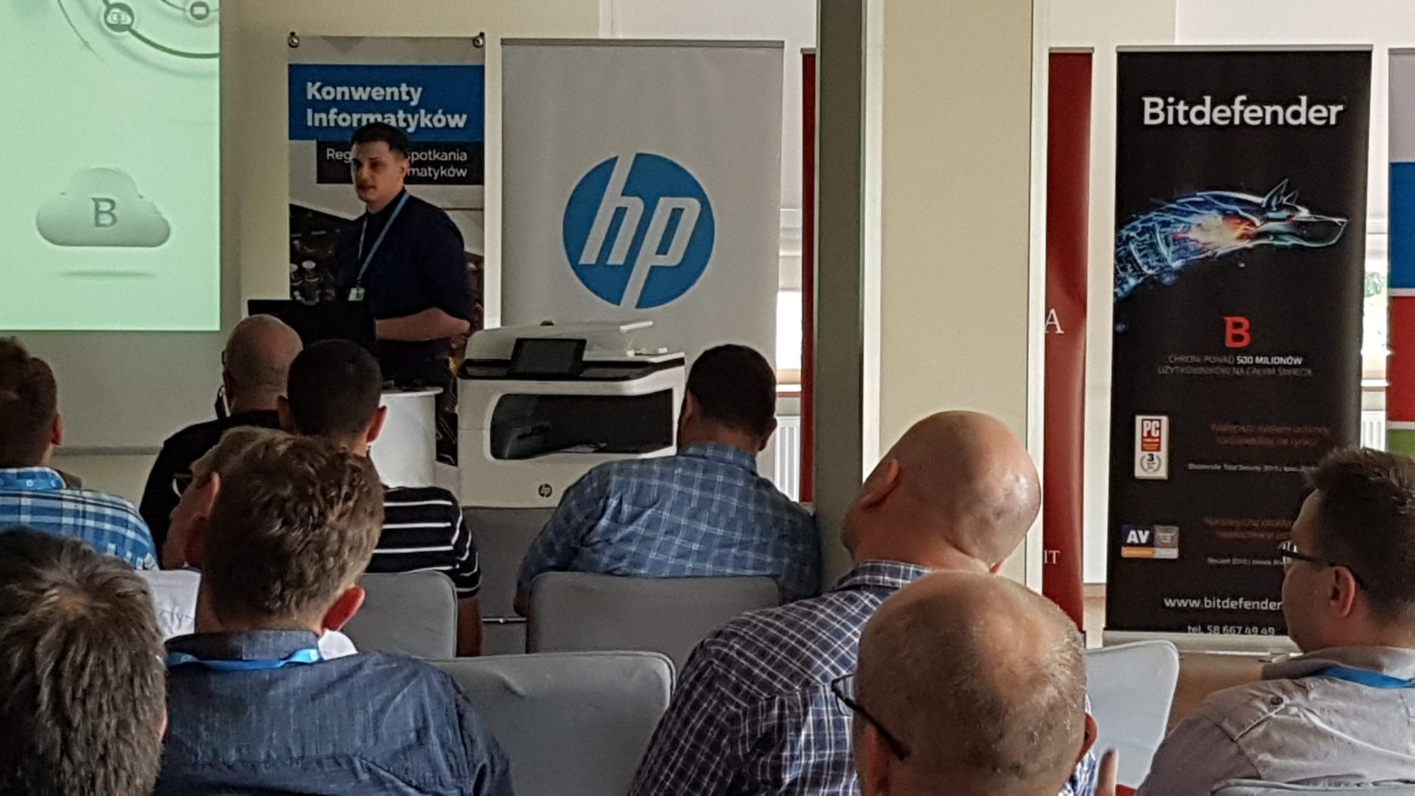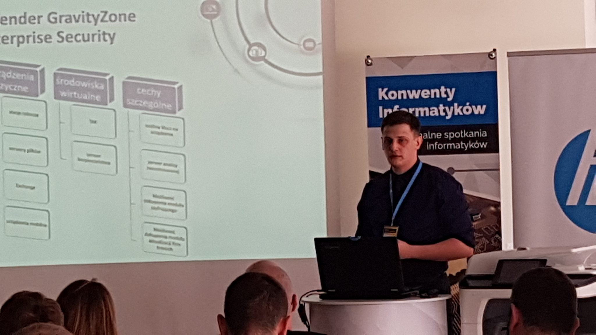 Wystąpienie naszego prelegenta, Mateusza Bergolca pt. „Ochrona antywirusowa w chmurze czy lokalnie” dotyczyło najnowszych rozwiązań bezpieczeństwa dostępnych w pakiecie programów Bitdefender GravityZone. To nowoczesne oprogramowanie dla firm dostępne jest